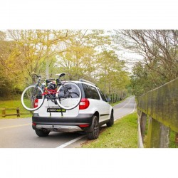 Das Rack gibt dem Fahrrad einen größeren Abstand zum Kofferraum, um mögliche Berührungen zu vermeiden.Solide aus Stahl gebaut und mit schlagfesten Kunststoffen versehen.