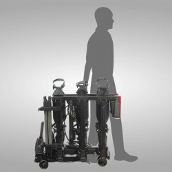 Vous pouvez rabattre les rails solidaires des feux et occuper un minimum d’espace de rangement. Pas besoin de le porter, vous pourrez le faire rouler grâce à ses roulettes intégrées.