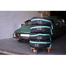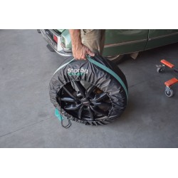 Ce set de 4 housses pour pneus/roues vous permet de transporter vos roues ou pneus lors des changements hiver/été sans vous salir et sans salir votre véhicule.Il permet aussi de stocker les pneus à l’abri de la lumière, facteur important de vieillissement des pneus.Enfin, grâce à des repères sur chaque housse, vous savez où remonter chaque roue sur votre voiture.